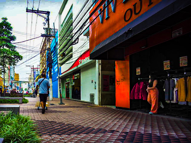 Andar no calçadão é uma emoção! Se houver novidade, então, é mais intensa a sensação! Foi a primeira vez que ali estive. No calçadão de Santo André está o centro comercial da cidade e seu piso tem desenho inspirado em artista local, Luis Sacilotto. O calçadão desperta a atenção! A manhã nublada prometia a chegada do sol, que veio uma hora antes do meio-dia! Nosso grupo havia passado numa bela padaria e ninguém ali estava de barriga vazia! Quando vi os primeiros raios de sol, busquei parceria! O aprendizado está ligado à companhia! Quem ensina amigo é! A busca da luz na fotografia é uma alegria! Pois é! Viva!!!